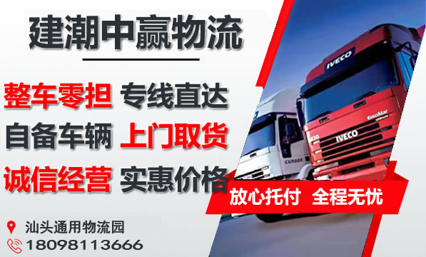 3、汕头到安庆物流专线价格优惠、运货及时,欢迎来人来电咨询汕头到安庆的物流价格、运费和报价等相关问题,建潮中赢物流将全力为您提供合理的运输方案。